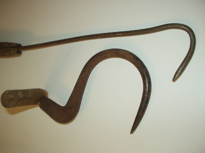 old antique vintage wood handle metal farm hay ice meat fish gaff hook hand tool