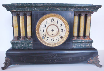 Title (ebay affiliate link): Antique SethThomas Greek Revival Mantle Clock Faux Marble with Pillars