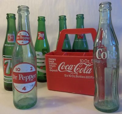 Title (ebay affiliate link): Coca-Cola Vintage Carrier with Six 10-oz Bottles of 7Up, Coke & Dr Pepper