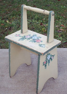 Title (ebay affiliate link): VINTAGE WOODEN STOOL VERY CHIC H-P FLOWERS*CHARMING