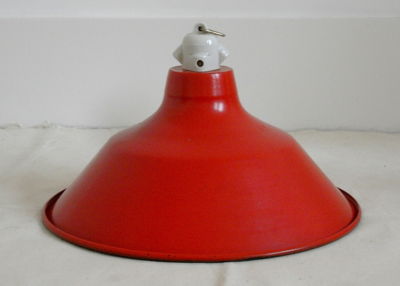 Title (ebay affiliate link): FRENCH RED AND WHITE ENAMEL,PENDANT SHADE, INDUSTRIAL, SHABBY CHIC, EAMES ERA