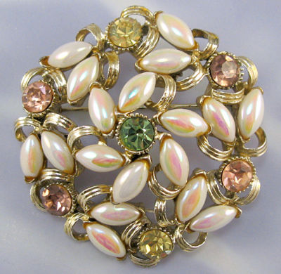BSK AB Milk Glass Rhinestone Pin Brooch Pastel