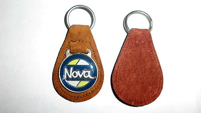 Title (ebay affiliate link): 1968-1978 Vintage Chevy Nova Keychain Brown Leather Imbedded Plastic Emblem