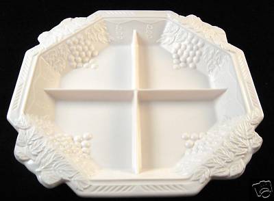 Jeanette Shell Pink Milk Glass 12" Relish Vineyard Dish