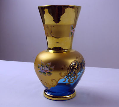 BOHEMIAN GLASS ENAMEL GOLD VASE 8 ½"