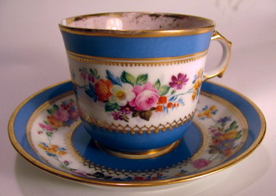 Imperial Russian Popov Hand Painted Porcelain Cup & Saucer F as/is