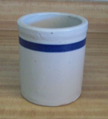 Title (ebay affiliate link): Vintage Stoneware Crock Beater Jar Blue Stripe Band- Beveled Inside 5 1/4 " Tall