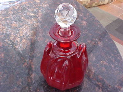 DEEP RUBY RED PERFUME BOTTLE.VINTAGE W/ CRYSTAL TOP
