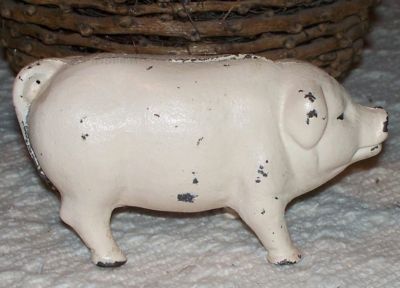 ANTIQUE VINTAGE CAST IRON PIG STILL PIGGY BANK