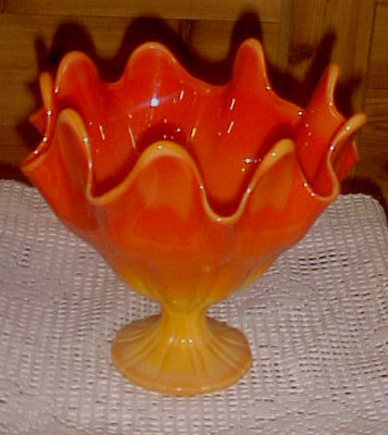 RETRO VINTAGE ORANGE SLAG GLASS COMPOTE BOWL VASE ~ L. E. SMITH? ~