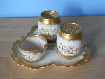 William Lycett Limoges Spicy set of 4 pc White Porcelain Gold Trim AS IS