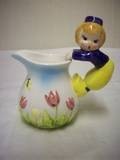 Lefton's Small Pitcher w/ Tulips and Little Dutch Boy as Handle Made in Japan