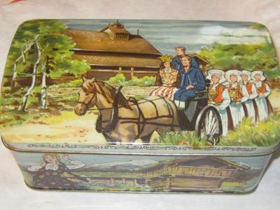 VINTAGE BJELLANDS SARDINE TIN NORWAY KING QUEEN HINGED LID