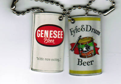 2 Beer Keychains Genesee Beer and Fyfe and Drum 2" x 1"