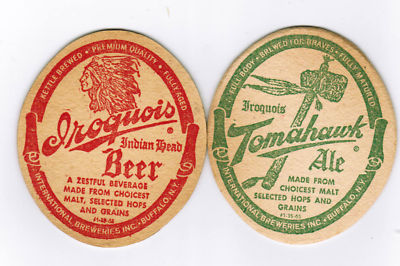 One Iroquois Beer Coaster Indian Buffalo New York Tomahawk