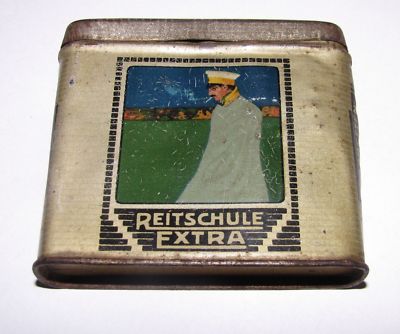 Title (ebay affiliate link): Vertical Sized CONSTANTIN Reitschule 1930's Cigarettes Tin Box