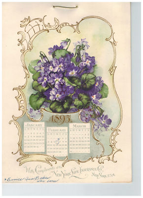Title (ebay affiliate link): Vintage New York Life 1895 calendar&Travelers Insurance advertisement