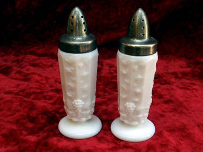 Vintage Milk Glass Salt & Pepper Shakers Paneled Grape