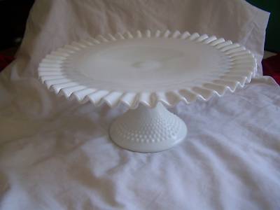 HUGE! Fenton Depression Milk Glass "Hobnail" Cake Plate