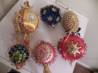 Title (ebay affiliate link): Lot 6 Vintage Christmas Ornaments Beaded Handmade Decorative Shadow Egg Decor