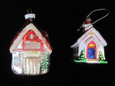 Title (ebay affiliate link): Vintage German Glass Christmas Ornaments, a Church & a Christmas House