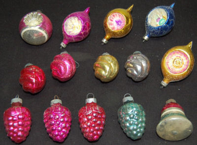 Title (ebay affiliate link): Lot 14 Assorted Vintage Christmas Ornaments Including Indents Pine Cones & Bell