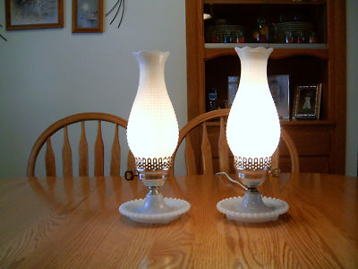 White Milk Glass Hobnail (Underwriters Laboratories) Set of 2 Portable Lamps