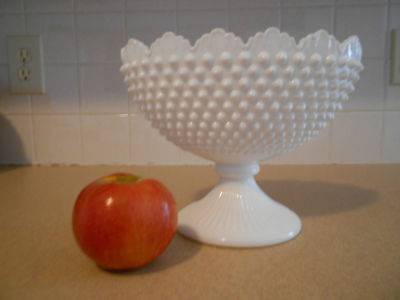 Milkglass Hobnail Large Oval Shaped Compote Bowl