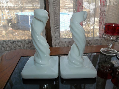 Westmoreland Milk Glass Lotus Pattern Spiral Candle Holders