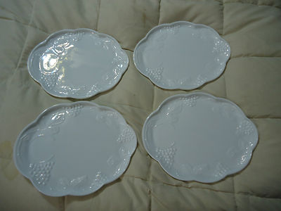 VINTAGE WHITE MILK GLASS GRAPE HARVEST VINE GLASS SAUCER PLATES LOT SET DISH