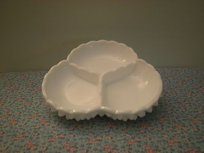 Fenton Milkglass Hobnail 7" Wide Divided Tray.