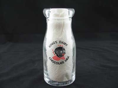 Title (ebay affiliate link): BLACK AMERICANA KING'S DAIRY CHOCOLATE MILK GLASS MILK BOTTLE