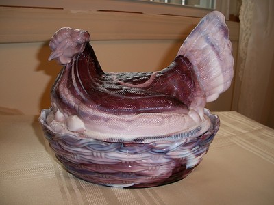 Title (ebay affiliate link): Large Purple Slag Milk Glass Hen Chicken on Nest Box 8" Covered Westmoreland ?