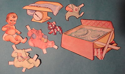 Title (ebay affiliate link): Vintage Early 1960's Baby Paper Doll With 3 Outfits, Scale, Tub, Toy