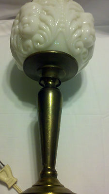 Cherub face putti table lamp milk glass