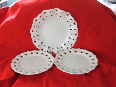 ELEGANT MILK GLASS PLATE AND 2 SALAD / CAKE PLATES