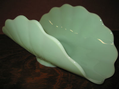 Jadeite green glass serving fruit bowl / banana boat tray Jadite Jade milk candy