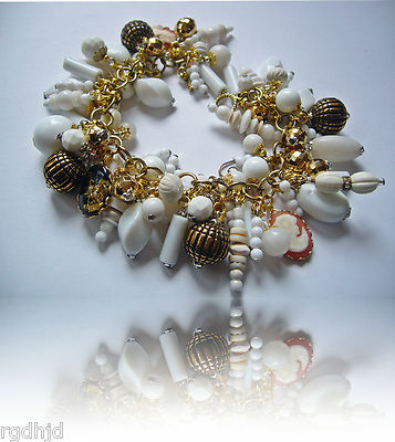 Title (ebay affiliate link): Vintage WHITE Bead CHARM Bracelet-VINTAGE Cameos, GOLD Accents-MILK Glass-QUARTZ