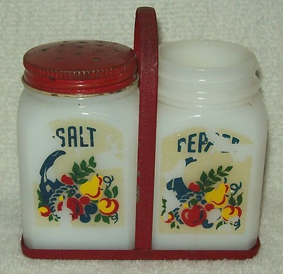 Title (ebay affiliate link): Vintage TIPP Hazel Atlas Milk Glass Salt & Pepper Shakers Range Set w/Rack