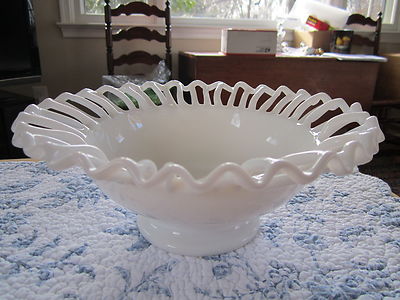 Title (ebay affiliate link): Vtg. Westmoreland Milk Glass Serving Bowl Open Edge Lace Work Crimped Pedestal