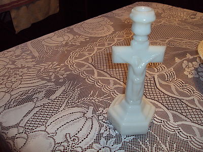VINTAGE MILK GLASS CROSS CRUFIX CANDLE HOLDER