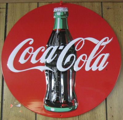 Embossed Tin Coca-Cola Disc Sign -NEW