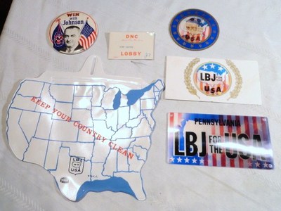 Title (ebay affiliate link): 1964 Democratic Convention w/ LB Johnson President Flicker Buttons, Lobby Card