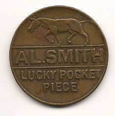 * Alfred E. Smith brass Lucky Pocket Piece 1928 political medal
