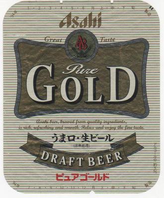 Asahi Breweries, Tokyo, Japan - Pure Gold - beer label (soak?)