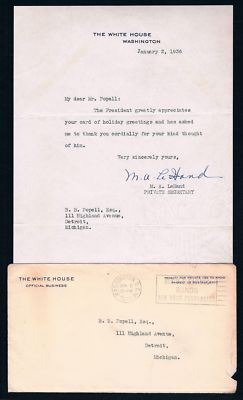 Title (ebay affiliate link): FRANKLIN D. ROOSEVELT M. A. LeHand SIGNED LETTER AUTOGRAPH FDR White House COVER