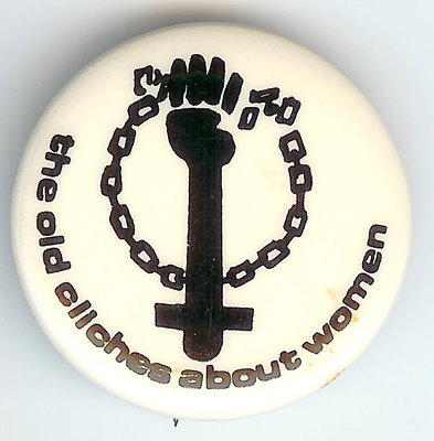 Title (ebay affiliate link): 1970's era Women's Rights Pin! the old cliches about women