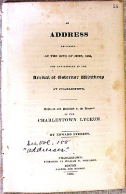 Title (ebay affiliate link): 1830 Address Anniversary Arrival GOVERNOR WINTHROP CHARLESTOWN EDWARD EVERETT