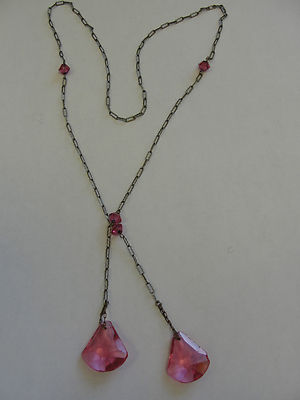 Title (ebay affiliate link): ANTIQUE SPARKLY CUT CLEAR PINK CRYSTAL STERLING NECKLACE TIE-A-ROUND
