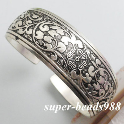Antique Tibet Silver Metal Arabesquitic Bead Adjustable Bangle Bracelet SZ012